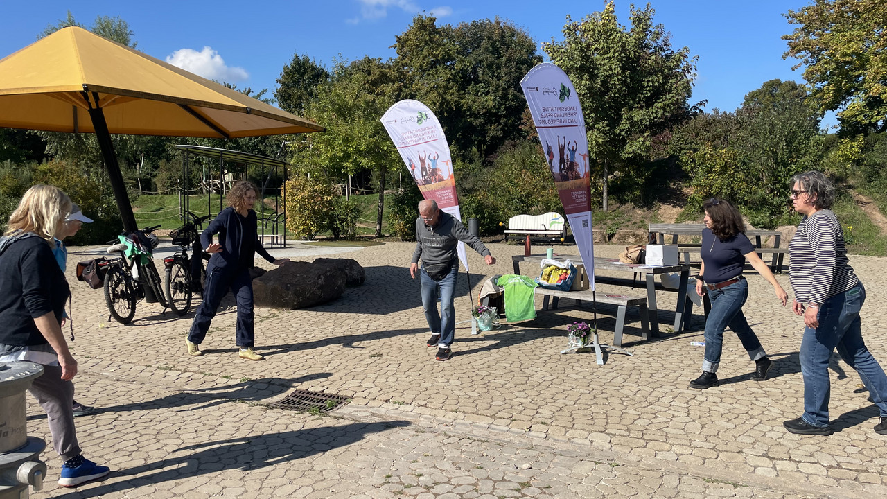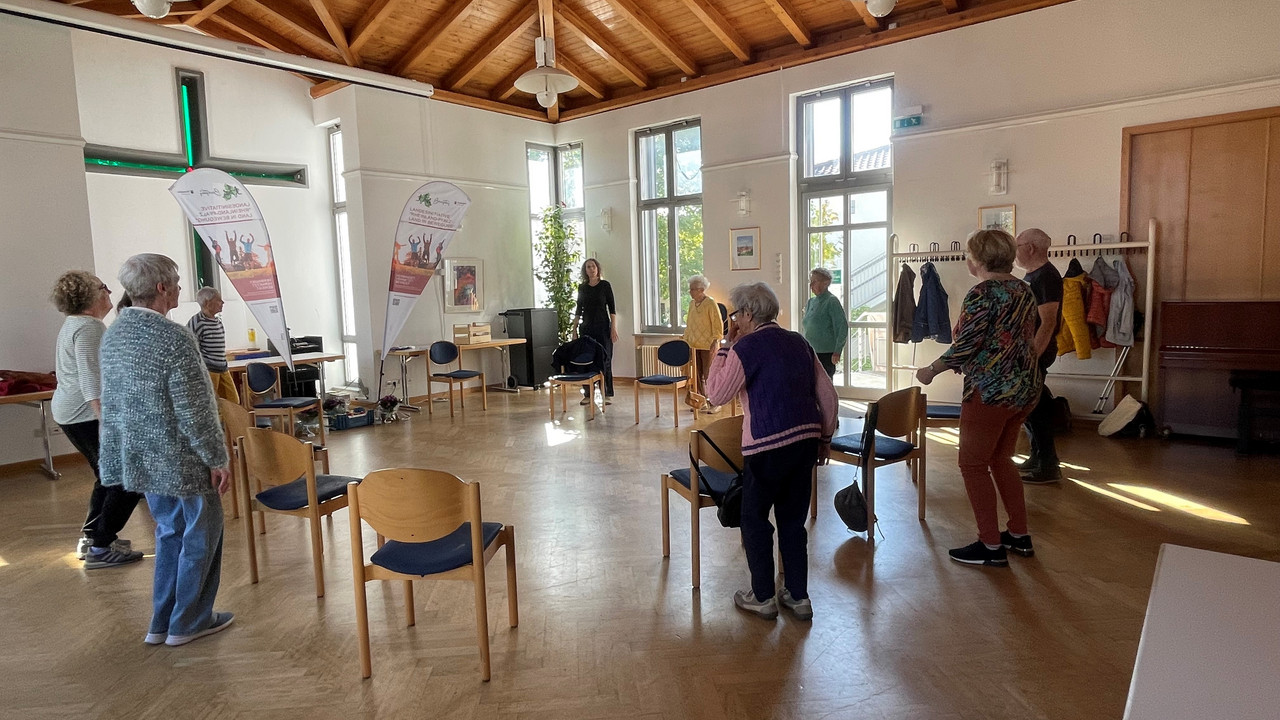 Unter fachkundiger Anleitung von Bewegungstherapeutin Petra Cuadra konnten Interessierte das Programm direkt ausprobieren. Die Mitmachangebote fanden an mehreren Orten im Landkreis statt – in Offenbach auf dem Platz vor dem Mehrgenerationenhaus, im Altenheim St. Josef in Herxheim, auf der Alla-Hopp-Anlage in Ilbesheim, in Annweiler sowie im Haus der Familie in Bad Bergzabern.