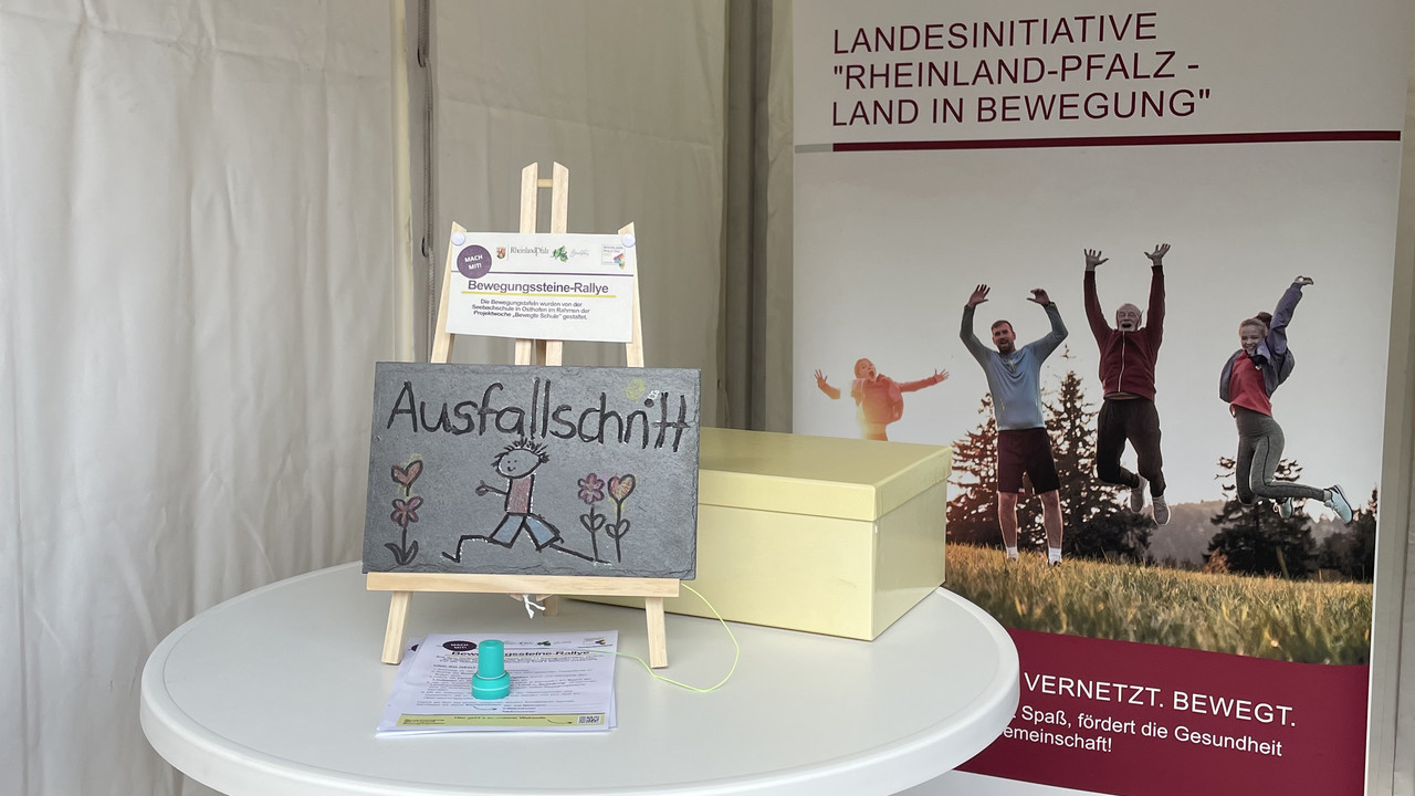 Für kleine und große Gäste wurde auf der „Zusammen sind wir sportlich“-Meile jede Menge geboten. Auch am Stand der Landesinitiative stand Mitmachen, Entdecken und Gewinnen im Mittelpunkt. Hier konnten Bewegungssteine gestaltet und bei einer Tombola-Aktion attraktive Preise gewonnen werden. Über die drei Festtage hinweg wurde zudem eine „Bewegungssteine-Rallye“, die in Kooperation mit Unterstützenden aus weiteren Themenbereichen des Rheinland-Pfalz-Tags“ angeboten. Auf dem gesamten Festgelände waren elf Bewegungstafeln verteilt – gestaltet von Schülerinnen und Schülern der Seebachschule in Osthofen im Rahmen der Projektwoche „Bewegte Schule“. Jede Tafel präsentierte kleine Bewegungsaufgaben. Ausgestattet mit einem Laufzettel machten sich die Teilnehmerinnen und Teilnehmer auf die Suche nach den Bewegungstafeln, die an den Ständen unserer Partnerinnen und Partner verteilt waren. An jeder Tafel galt es, eine kleine Bewegungsaufgabe zu absolvieren – als Belohnung gab es einen Stempel. Wer mindestens fünf Stationen erfolgreich gemeistert hatte, konnte den ausgefüllten Laufzettel am Stand von Land in Bewegung abgeben und sich damit einen Platz im Lostopf sichern.