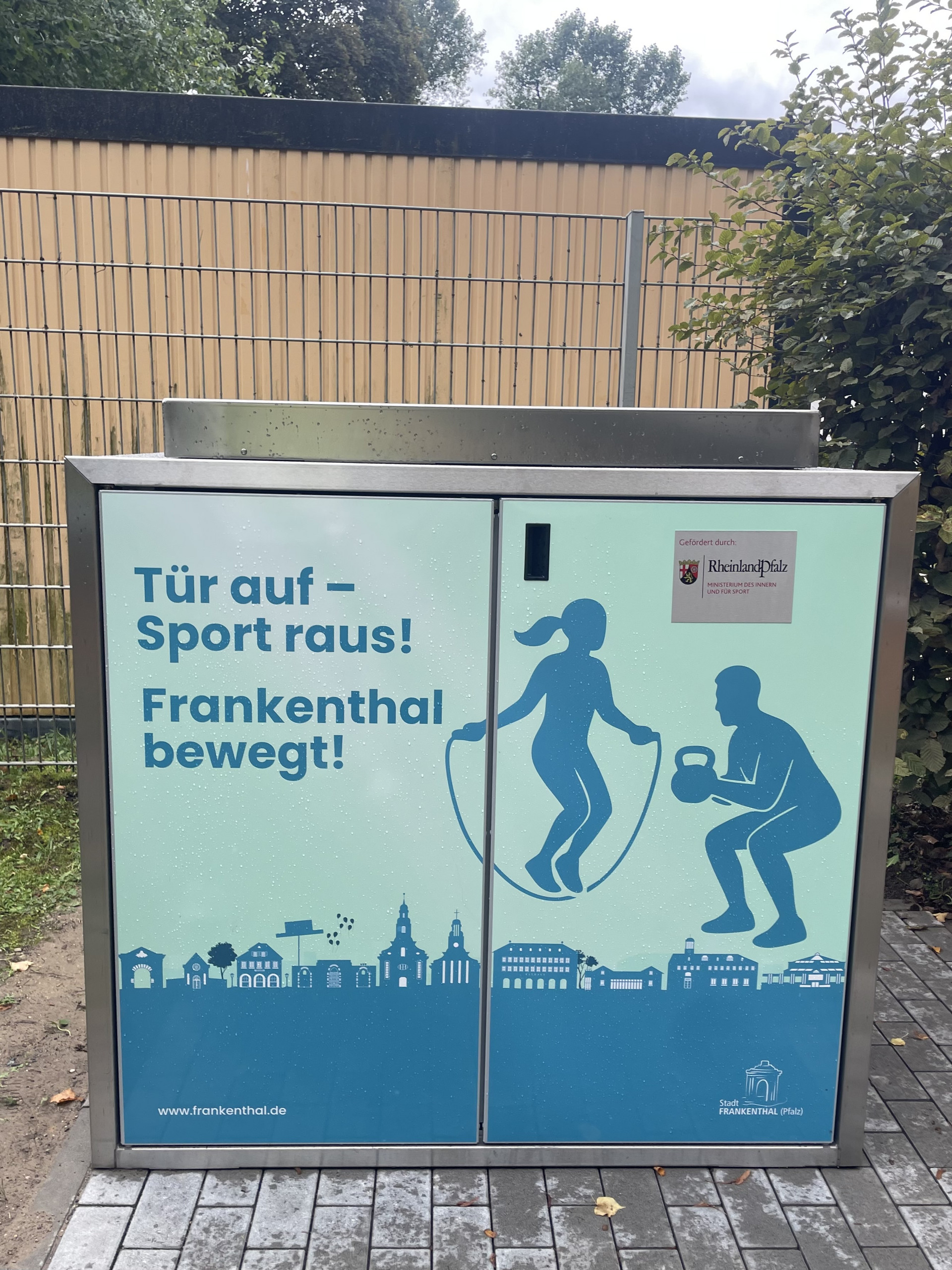 In unmittelbarer Nähe der Sport- und Freizeitanlage Exe in Zweibrücken wurde ein Sportbox aufgestellt. Sie ist frei zugänglich das heißt, alle können das niedrigschwellige Bewegungsangebot der nutzen.