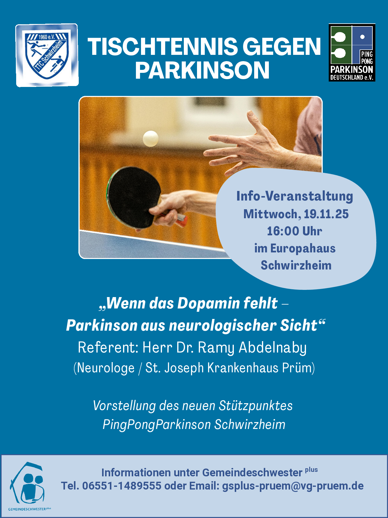 Mit einer Info-Veranstaltung starten wir in eine wöchentliche Trainingsgruppe. Willkommen sind alle Parkison-Betroffene -Vorkenntnisse sind nicht erforderlich.