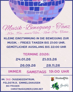 Das Angebot von Frauen für Frauen startete im letzten Jahr und brachte Frauen aus dem Raum Emmelshausen gemeinsam in Bewegung. Es wurden verschiedene Sportarten vorgestellt und vor Allem die Bewegung zu Musik und Tanz bereitete den Frauen viel Freude. Daher soll es auch in diesem Jahr wieder eine Veranstaltungsreihe unter dem Motto „Frauen in Bewegung“ geben. Bei jedem Termin wird es wieder Bewegung und Tanz zu Musik geben.
