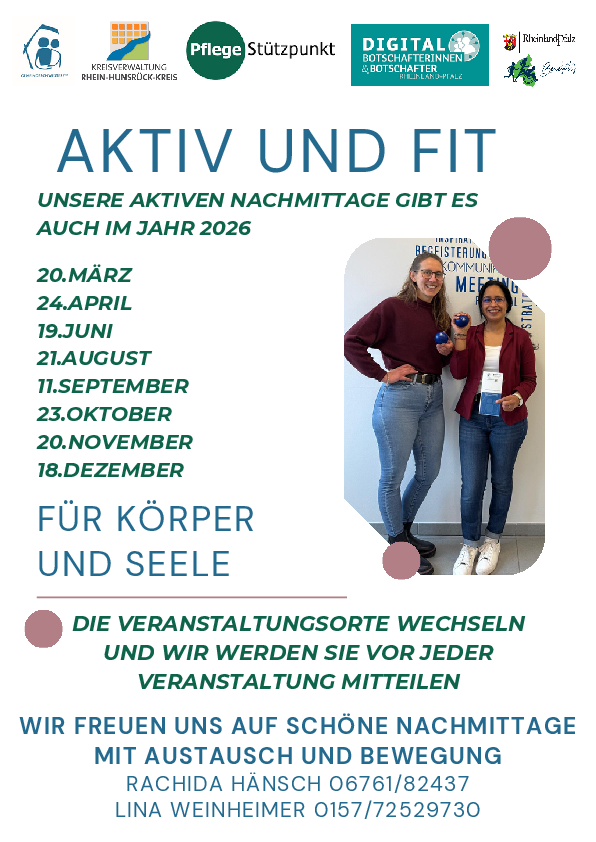 Monatliche Angebote unter dem Motto „Gemeinsam aktiv und fit für Körper und Seele“ mit verschiedenen Schwerpunkten sollen Seniorinnen und Senioren, deren Angehörigen sowie Seniorenbeauftragten und Helferinnen und Helfern die Möglichkeit bieten, aktiv zu bleiben und ihre Lebensqualität zu verbessern.