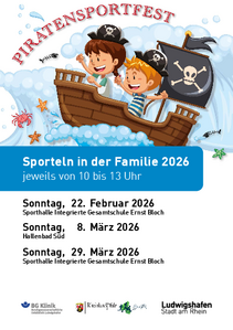 Bei “Sporteln in der Familie 2026” erwartet euch an drei Aktionstagen ein spannendes Piratensportfest voller Bewegung, Spaß und Abenteuer. Kinder von 3 bis 10 Jahren erleben mit Familie und Freunden sportliche Herausforderungen, Schatzsuchen und Entdeckungen.