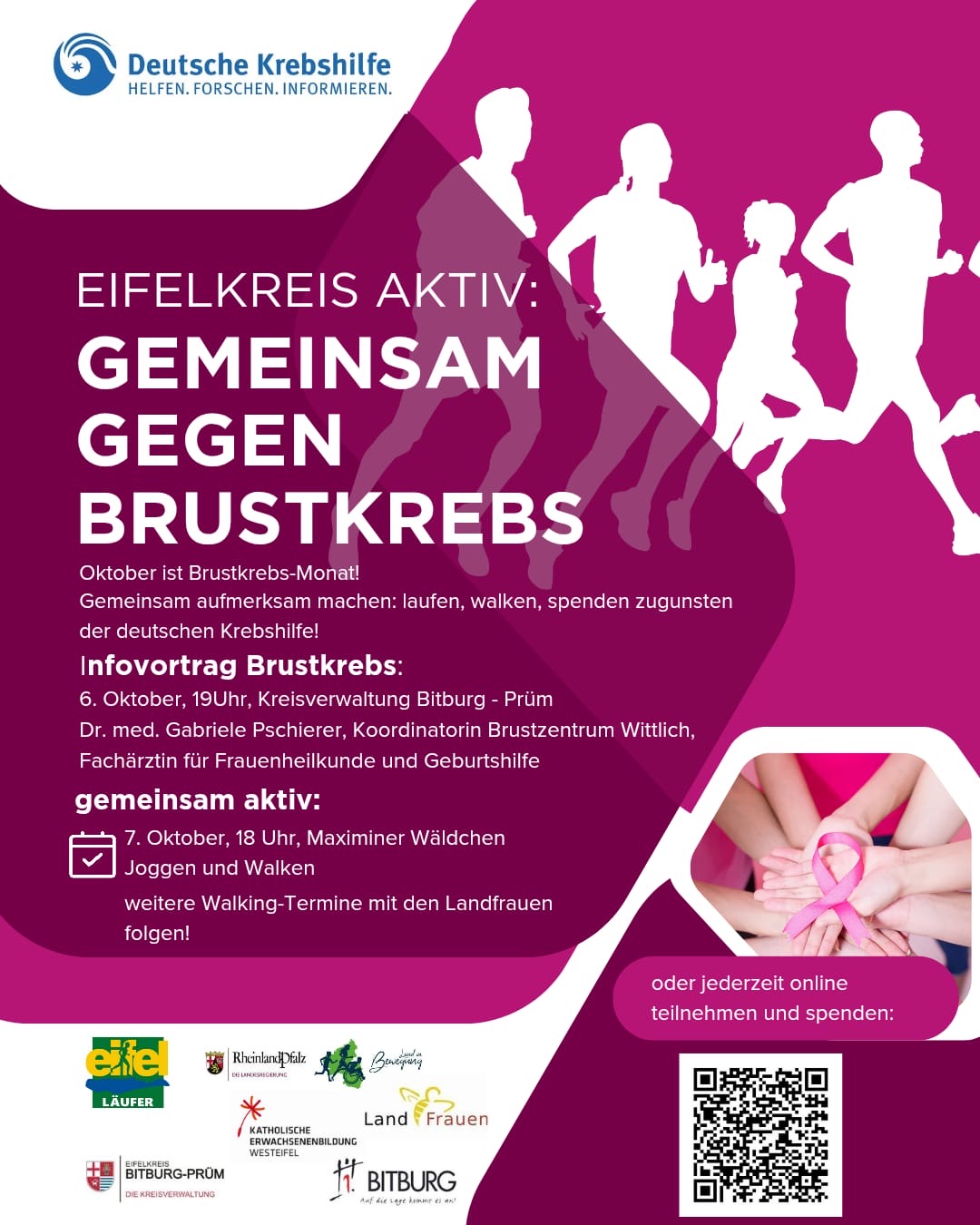 Eifelkreis aktiv: Gemeinsam gegen Brustkrebs. Wir machen gemeinsam mit laufen, walken und spenden zugunsten der deutschen Krebshilfe auf Brustkrebs aufmerksam.